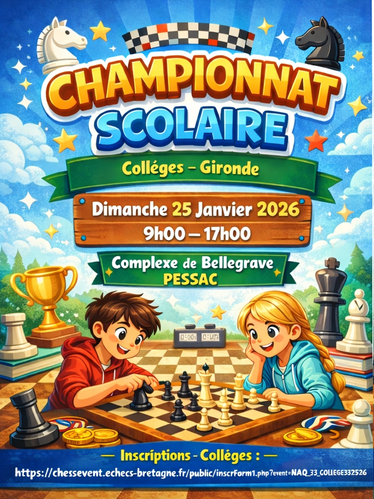 Championnat Départemental scolaire de Gironde Pessac le 24 et 25 janvier 2026CDJE3316 janvier 2026Commission Scolaires N’hésitez pas à diffuser ‘l’info autour de vous.